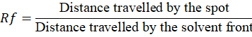 Rf=Distance travelled by the spotDistance travelled by the solvent front