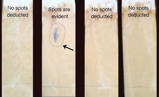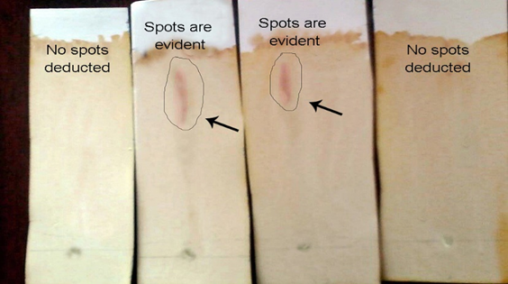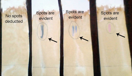 Two faint spots identified for Phenol and Terpenoid