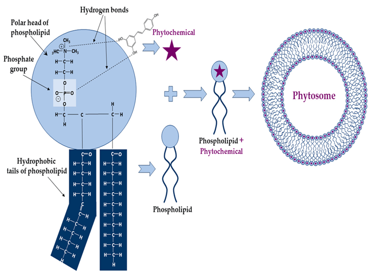 For centuries, medicinal herbs and their bioactive components have been integral to the treatment of various diseases. Nonetheless, despite their therapeutic promise, several challenges impede their clinical application. A significant factor contributing to the renewed interest in herbal medicines is the inadequacy of modern pharmaceuticals in effectively addressing all health conditions, coupled with concerns regarding the safety and side effects associated with synthetic drugs. Numerous studies suggest that compounds derived from plants frequently demonstrate superior efficacy with fewer adverse effects. However, their limited oral bioavailability presents a substantial barrier to clinical use like quercetin(1), ,thymoquinone (TQ)(2), piperine,(3) To mitigate these challenges, various formulation strategies have been proposed, including emulsions, liposomes, nano-formulations, molecular modifications, and prodrug administration. Among these strategies, phyto-phospholipid complexes, commonly referred to as phytosomes, have emerged as a promising method to enhance the absorption and bioavailability of herbal bioactives. The term "phytosome" is derived from "phyto" (meaning plant) and "some" (indicating a cell-like structure). Phytosomes, also known as herbosomes, represent advanced vesicular drug delivery systems designed to improve the pharmacokinetic and pharmacological properties of poorly soluble phytoconstituents. They are created by complexing phospholipids with plant extracts or phytochemicals in an aprotic solvent, resulting in a stable and bioavailable formulation. In contrast to conventional herbal extracts, phytosomes demonstrate higher drug encapsulation efficiency, enhanced stability, and superior absorption due to the strong interactions between the polar heads of phospholipids and phytoconstituents. This interaction enhances solubility, leading to improved gastrointestinal uptake and augmented therapeutic effects.