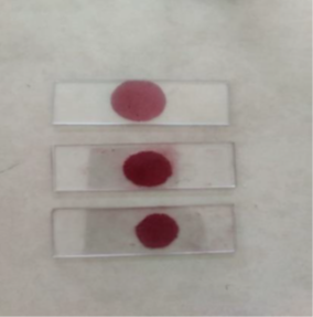 After applying the lipstick sample between the two glass slides 50 grams of weight was placed there for two minutes to compress it to a uniform thickness.