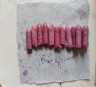 In the formula 2 we used 3waxes and 3oils, lemon juice, white soft paraffin, 10 ml of extract in this process we got light pink shade for lipstick. In the formula 3 we used 3waxes and 3oils, lemon juice, white soft paraffin, 15 ml of extract in this process we got dark pink shade for lipstick. From the above 3 formulations the formula 3 is best one.