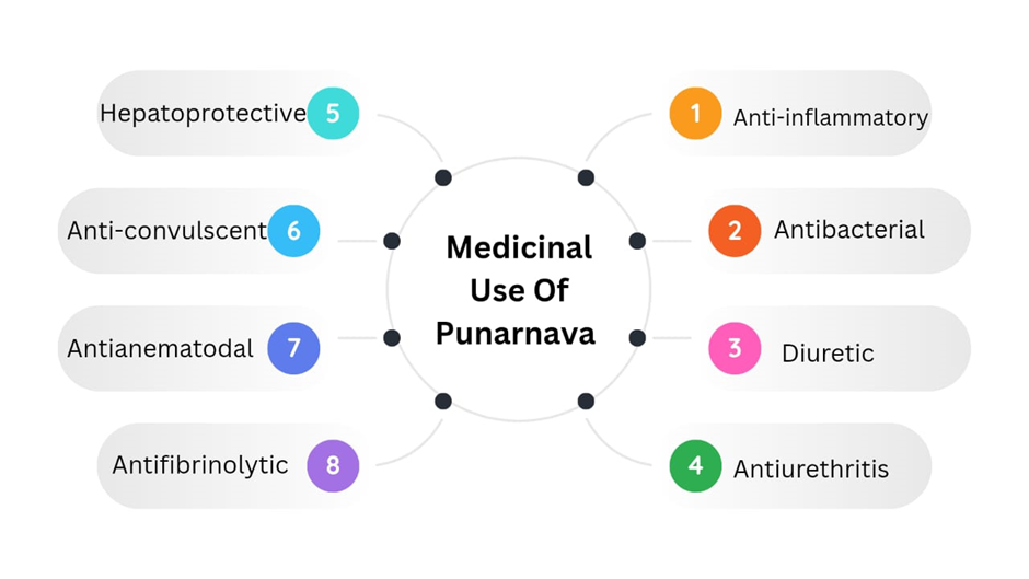 Boerhavia diffusa L., also referred to as "Punarnava," is a member of the Nyctaginaceae family and has been utilized extensively in traditional medicine since forever. Within the pantropical taxonomic genus Boerhavia L., B. diffusa L. is distributed cosmopolitanly in both hemispheres.