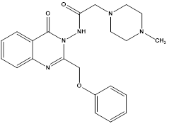 In search of selective VEGFR- 2 inhibitors, Abdallah E Abdallah et al synthesized new nineteen quinazolinone derivatives and biologically evaluated for their potential anticancer activity. All target compounds were evaluated in vitro for VEGFR-2 tyrosine kinase inhibition. Then, nine compounds of best results were further investigated by in vitro assay against three human cancer cell lines, namely HepG2, PC3 and MCF. N’ -{2-](3-Ethyl-6-nitro-4-oxo-3,4-dihydroquinazoline-2-yl)thio[acetyl}benzohydrazide (E) was found to be the most potent candidate as it showed IC50 = 4.6 ± 0.06 µM against VEGFR-2 kinase. It also exhibited IC50 = 17.23 ± 1.5, 26.10 ± 2.2 and 30.85 ± 2.3 µg/mL against HepG2, PC3 and MCF, respectively. At the same time it showed IC50 = 145.93 ± 1.1 µg/mL against the normal human lung fibroblasts cell line (WI-38), indicating good selectivity index. Further investigation into HepG2 cell cycle showed the ability of compound E to induce apoptosis and arrest cell growth at G2/M phase.22