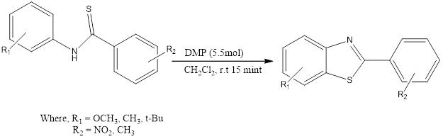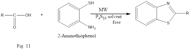 *o*-Aminothiophenol + aldehydes, solvent, MW irradiation. |