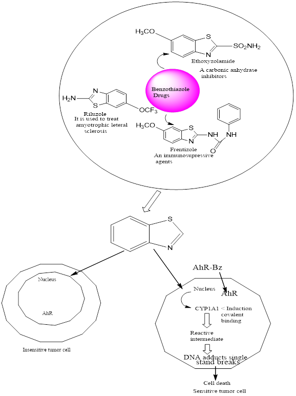 Text (Fig .41) Screen Mechanisms of action of benzothiazole derivatives. In showed (Table 4) Compared effectiveness of benzothiazole compounds versus recognized anti-cancer treatments