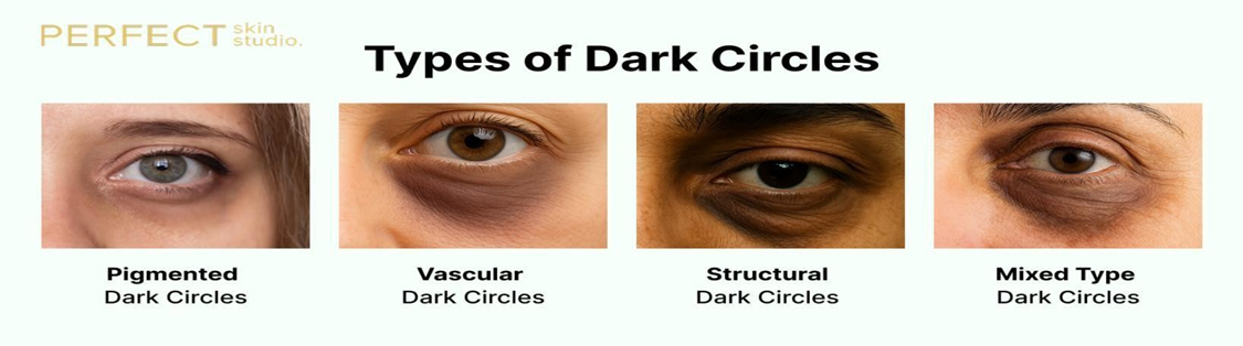 When two or more types of dark circles (pigmented, vascular, shadow, hollow, or allergic) occur simultaneously, they are referred to as mixedtype dark circles. Multiple symptoms such as discoloration, puffiness, and shadowing are frequently present, making treatment more complicated and requiring a customized approach.