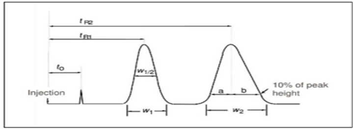 The ideal situation should result in a Gauss-shaped chromatographic peak. Additionally, a deviation from a normally distributed distribution always persists in practice, signifying a non-uniform manner of mobility and transmission. Regulatory bodies like the USP Pharmacopoeia and EP have advised that it be included as one of the system suitability characteristics as a result. Although they are frequently inaccurate and unequal, the asymmetry factor and tailing factor are about the same for almost the whole era. Values should typically range from 1.0 to 1.5, with values larger than 2 being inappropriate.