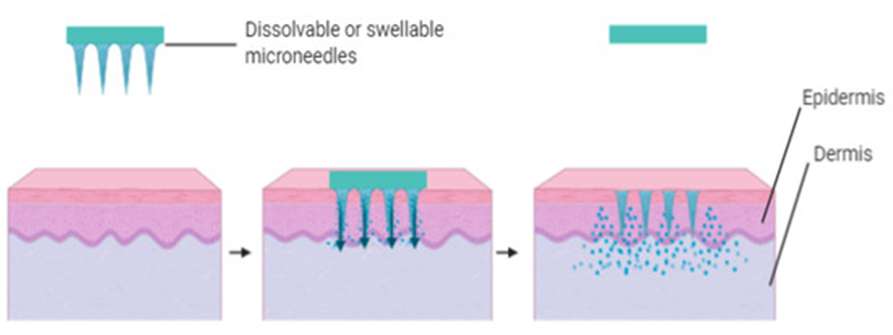 Figure 3: Illustration of poke and release using dissolving or swellable micro needles.