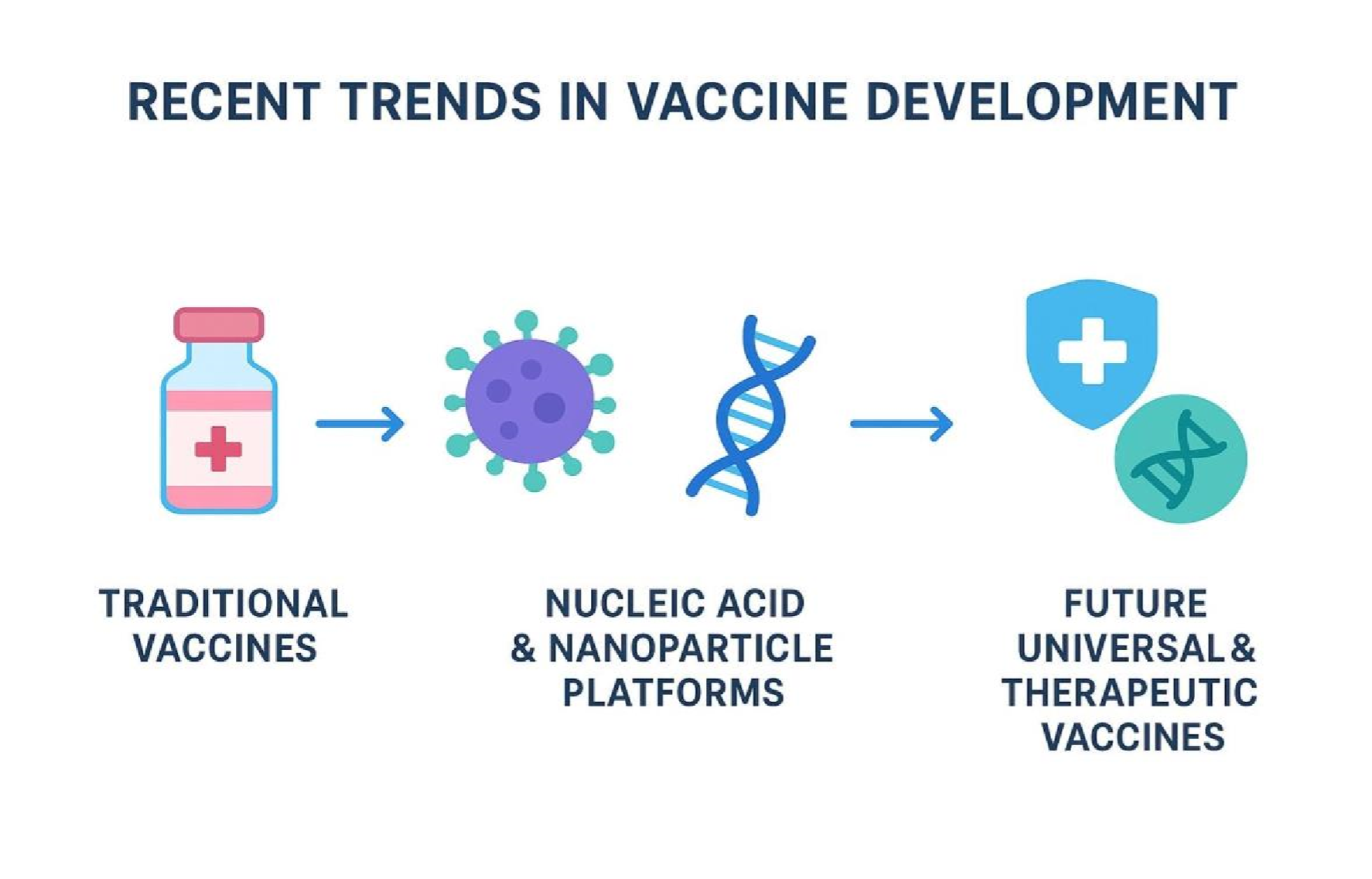 Despite these promising developments, significant challenges remain. Issues such as large-scale manufacturing capacity, regulatory harmonization, equitable distribution, vaccine hesitancy, and robust safety monitoring continue to shape the global vaccine landscape. Addressing these challenges will be essential for translating scientific advances into real-world impact. This review aims to provide a comprehensive overview of recent trends in vaccine development, highlighting advances in platform technologies, delivery strategies, antigen design, and emerging applications. It also explores the challenges and future directions that will define the next era of vaccinology, ultimately underscoring the transformative potential of vaccines in improving global health outcomes. [2]