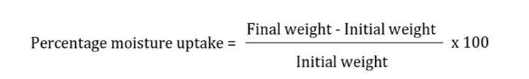 Percentage moisture uptake: