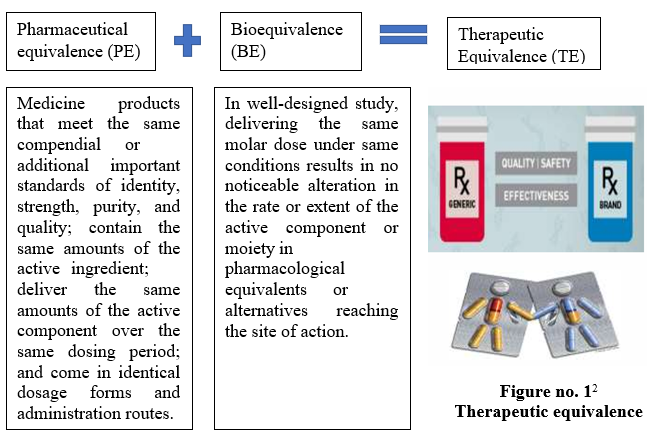 When two formulations of the same medicine or two medicinal products are defined as bioequivalent, it means that they would have the same therapeutic effect or are therapeutically equivalent. In this case, most patients think that they can be used interchangeably. Two medications are identified as pharmaceutical alternatives to each other if they have a similar therapeutic component, but not necessarily in the same amount, dose form, or as the same salt or ester.1 BE studies generally use a “crossover design”, in which the test and reference products are supplied to healthy volunteers under closely monitored conditions. Pharmacokinetic properties are measured and compared, such as the area under the curve (AUC) and the maximum concentration (Cmax). The 90% confidence intervals for the ratio of these parameters must typically lie between 80 and 125% in order to meet the acceptance requirements for bioequivalence. 2