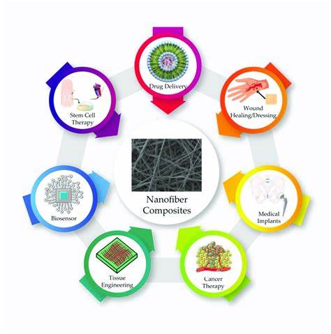 absorption of the drug Nanofibers amongst other uses, are an intriguing new material utilised in medical, filtration, barrier, wiping, personal care, composite, clothing, insulation and storage of energy. Nanofibers have proven their importance and convenience as medical carriers. Nanofibers are of significant interest for many applications due to their favourable features such as large surface area and porosity with tiny pore diameters 5. Lately, nanofibers have been utilised as a means of delivery for a variety of illnesses in healthcare systems. We covered some of the most important nanofibers uses below Wound healing using nanofibers Wound healing dressings cover the wound, absorb excess organic wound exudates, and accelerate the healing process. The polymer nanofibers that are generated by the generation and extension of a fluid jet are electrospun The Electrospun nanofibers are an excellent wound dressing alternative because to their unique features; the tiny pores and high-specific surface area limit the introduction of foreign microorganisms and help to regulate fluid drainages. In addition, the electrospinning method allows the integration of medicinal products in nanofibers for antibacterial and medical application It exhibited high oxygen permeability in addition to inhibiting the invasion of foreign microorganisms. Wound cures cover the wound, eliminate more bodily fluids and accelerate the cure. The wound dressing material performs such tasks, while simultaneously penetrating the moisture and oxygen as a physical barrier to the wound be Function in the medication delivery system As long as the drug content is stable, the rate of release from electrospun nanofiber may be modified by differing in the composition, porosity and form of the nanofibers. Nanofibers preserve the medication from disintegration after systemic administration as suitable via electrospun carriers. The nanofibers are employed in the delivery of drugs to a particular wound region, decreasing systemic substantially and at the same time minimising any undesirable drug effects. The idea is that as a drug's surface area and the associated carrier expands, the drug's dissolution rate also increases. Pharmaceutices products are dispersed across polymer Nanofibers. Depending on the kind of polymer carrier utilised in nanofibers production the dissolution of medicinal dose shapes may be delayed, immediate, fast, or altered. Nanofibers have been utilised successfully to carry antibody medicines, lipophilics and hydrophilics