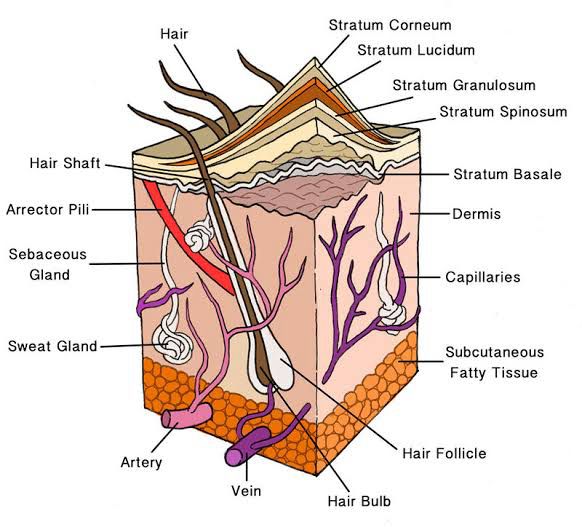 The outermost organ of the body, the skin is composed of layers of tissues and cells that envelop and shield the interior organs. It protects the body from external factors like bacteria, UV radiation, toxins, and physical harm by acting as a physical barrier. In addition, the skin is essential for controlling body temperature, detecting outside stimuli, eliminating waste through perspiration, and producing vitamin D when exposed to sunshine. The outermost layer, the dermis, the middle layer, and the lowest layer, the hypodermis, make up its three primary layers.In summary, skin is a critical organ for general health and survival because it is necessary for protection, homeostasis, and sensory functions.