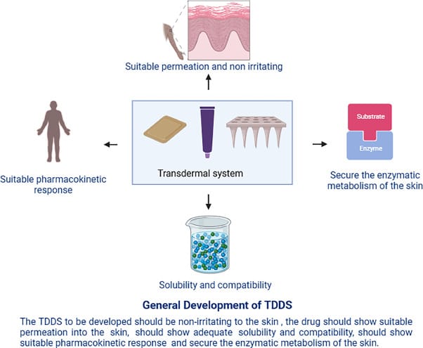 Transdermal drug delivery systems (TDDS) are designed to deliver drugs through the skin into the systemic circulation at a controlled rate. Since the approval of the first transdermal patch in 1979 (scopolamine for motion sickness), this route has become a promising alternative to oral and injectable drug delivery.