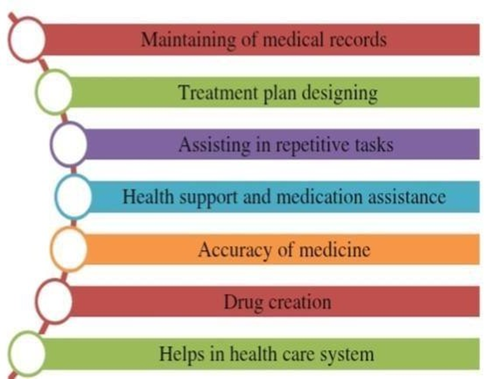 4. Patient Health Monitoring and Medication Support: AI-based systems assist patients by monitoring medication compliance, sending reminders, and tracking health parameters. These tools also facilitate clinical trials through the collection of real-time patient information.