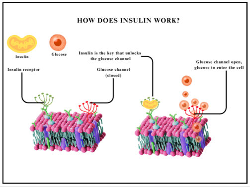 The image explains how insulin works at the cellular level.