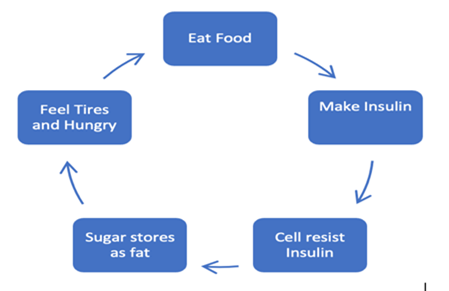 Insulin resistance disrupts this cycle, leading to hunger and fatigue.