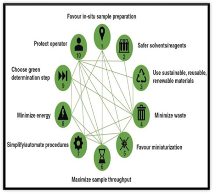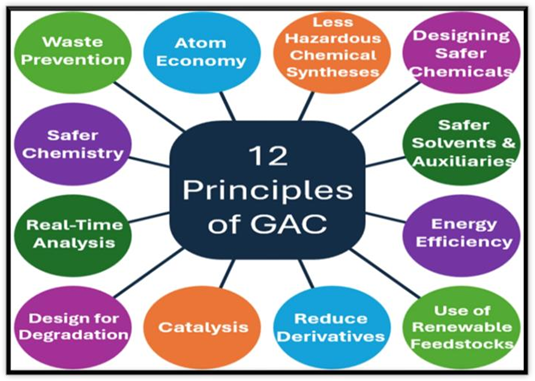 The green approach in chemical processes is a new issue that has emerged from scientists' concerns about sustainability, human health, and environmental protection."The design of chemical products and processes that are more environmentally benign" is one definition of "green chemistry." Analytical chemistry can directly adopt some of the Green Chemistry concepts. The field of chemistry known as "green analytical chemistry" (GAC) is concerned with conducting chemical analysis—that is, testing, measuring, and identifying substances—in a manner that is less harmful to the environment, people, and resources.It entails conducting chemical tests with fewer chemicals and energy, staying away from hazardous or toxic materials, cutting waste, and making the procedure sustainable and environmentally friendly.There are two ways to approach the connection between analytical chemistry and green chemistry. Green chemistry is controlled and justified by analytical chemistry. Analytical chemistry is a useful tool for confirming the environmentally friendly outcome of a chemical product or technology in this situation.[1][2] GAC applies Green Chemistry to analytical methods to cut environmental and health impacts. Emerging in 1995 and first noted in The Analyst, it grew with sustainability demands, aided by tools like NEMI (2002)[3]
