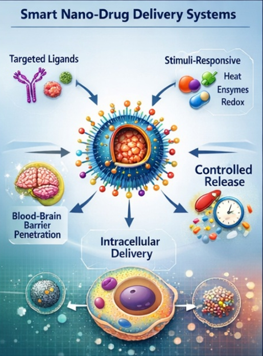 Proposed frameworks where nano-structures adapt in response to signals, improving targeted delivery. |