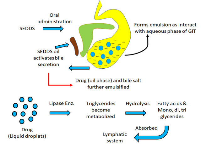 Although pill consumption is effortless, many new drugs exhibit low water solubility and limited absorption. Why? High-throughput screening and combinatorial chemistry have led to the development of more oily drugs. A promising alternative is the use of lipid-based drug delivery systems, which enhance absorption by using mechanisms that reduce degradation in the bloodstream and facilitate lymphatic transport. The ability to produce small droplets in gastrointestinal fluids, self-emulsifying properties, stability, and ease of production make SMEDDS stand out among other lipid-based systems.