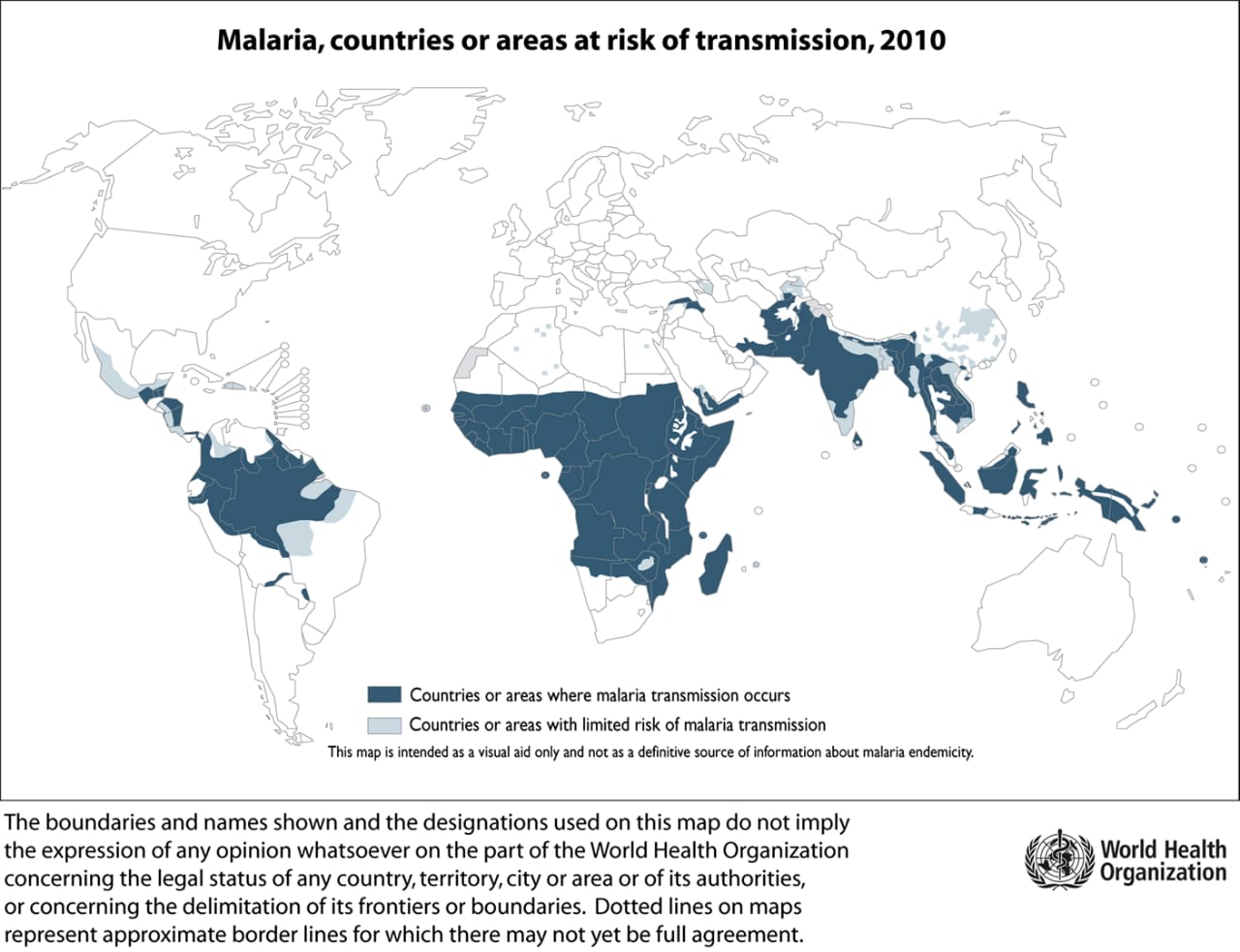 Figure- Countries and areas with risk of malaria transmission. Map from WHO International Travel and Health Programme [ 9].