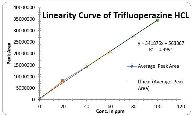 Working standards were prepared by serial dilution to cover the calibration range of 5–25 μg/mL for Trihexyphenidyl and 15–55 μg/mL for Trifluoperazine [7].