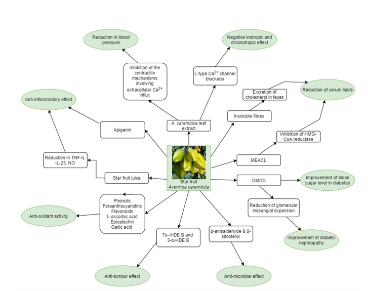 Fig 2. Schematic diagram of potential beneficial effects of Averrhoa carambola (37)