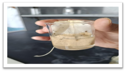 The calculated ash value of 45% indicates a substantial presence of inorganic minerals in the sample. This suggests that nearly half of the sample’s weight consists of non-volatile compounds that remain after incineration. Formulation 2 has an ash value of 25%, while Formulation 1 has an ash value of 45%. The lower ash content in Formulation 2 indicates fewer inorganic impurities.