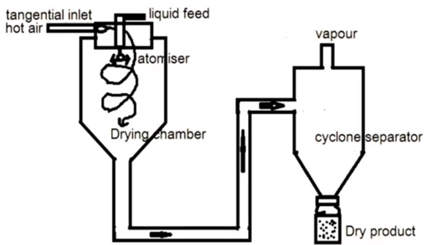 A spray dryer is a mostly used in the pharmaceutical industry, food, and chemical industries for converting liquid feed into a dry powder in a single step. The process involves atomization of the liquid feed, rapid drying through contact with a hot drying medium, and collection of the final powder.