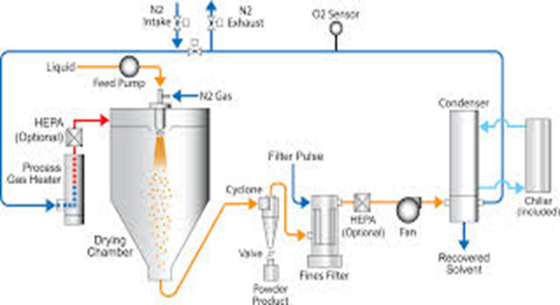 Drying process is one of the most Predominantly used unit operations in the pharmaceutical, food, chemical, and biotechnology industries, has a key function in enhancing the stability, shelf life, and handling properties of products. Among the various drying techniques, spray drying has gained remarkable attention owing to its versatility, scalability, and Competence to turn liquid formulations into stable dry powders in a one step. A spray dryer is essentially a device that atomizes a liquid feed into fine droplets, exposes them to a stream of hot drying gas, and quickly removes the solvent, resulting in dry product, free-flowing powder. This technique has become indispensable for heat-unstable materials, bioactive compounds, and formulations requiring precise Oversight of fine particle measurement and morphology.