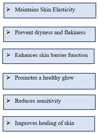 The skin is the largest organ in human body which comprises approximately 16% of body’s weight and displays surface area estimated to be around 2m2. The skin's barrier can be weakened by harsh chemicals, rough treatment, dry air, and sun exposure. Many studies have explored how the outer skin layer works and why keeping it hydrated is essential (Castro et al., 2023).