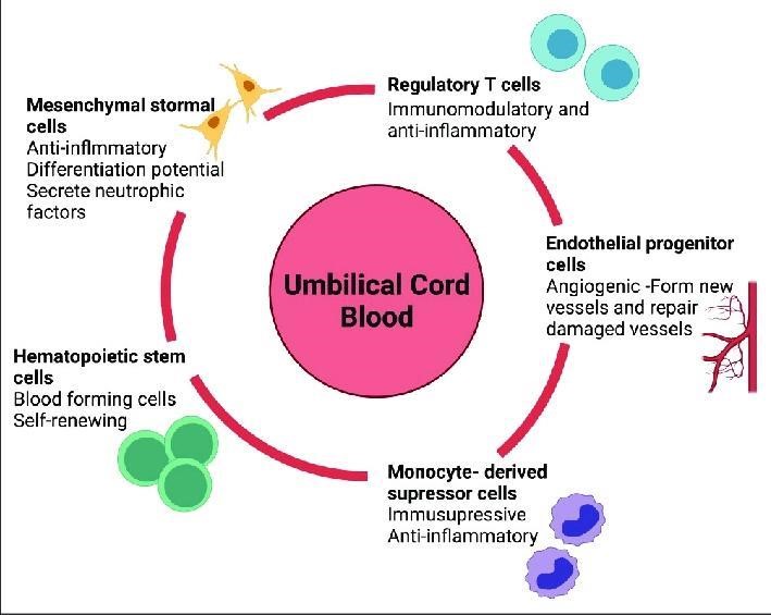 Mechanism: UCSCs from cord blood reconstitute the hematopoietic system by differentiating into red blood cells, white blood cells, and platelets. These cells also have an immunomodulatory effect, reducing the chances of graft-versus-host disease (GVHD) when compared to bone marrow transplants.[12]