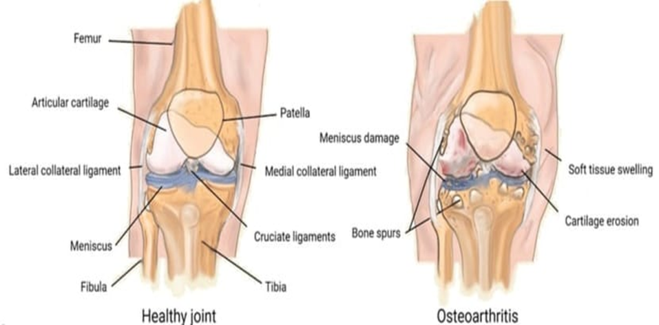 Osteoarthritis (OA) is a condition that impacts the joints, especially the ones that move. It happens when the smooth cartilage covering the bones wears down. Along with this, changes occur in the bone, new bony growths (osteophytes) may form, and the joint can become inflamed, leading to reduced normal movement. The problem usually starts with small or large injuries to the joint, which trigger abnormal repair processes and disturb the normal balance of joint tissues48.
