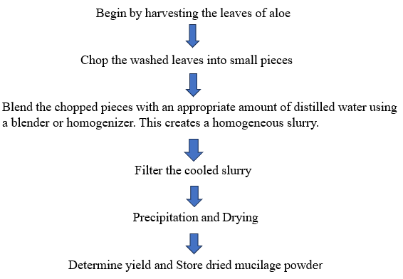 Overall, Aloe vera mucilage is a biocompatible, non-toxic, eco-friendly, and effective natural excipient suitable for pharmaceutical formulations. Its high yield in the hot water method and promising physicochemical profile makes it a viable candidate for use in dosage forms, especially as a natural binder. Further studies on formulation development and stability are recommended to maximize its pharmaceutical utility.