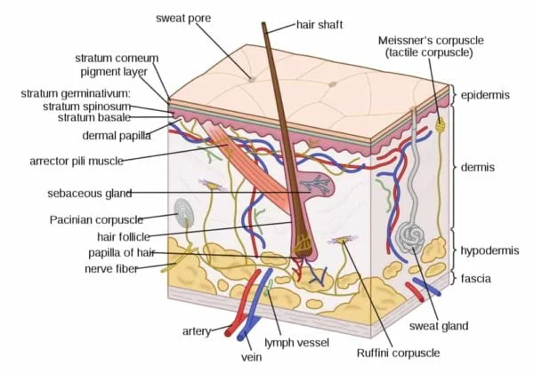 A third or so of the blood that circulates travels via the skin throughout the body, which has a surface area of two square meters on average for an adult. The epidermis is a complex organ with numerous histological layers. The epidermis, dermis, and hypodermis are the three main tissue layers that are frequently used to characterize it. Under a microscope, The skin's outermost layer is further separated into five anatomical layers, with the corneum stratum acting as the outermost layer that is exposed to the outside world.5
