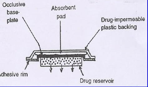 A streamlined version of the membrane permeation-controlled system is this one. In order to establish a thin layer of drug reservoir, the drug is first dispersed in an adhesive polymer, such as poly (isobutylene) or poly (acrylate) adhesive, and then the medicated adhesive is applied, either by solvent casting or hot melt, to a flat sheet of drug-impermeable metallic plastic backing. To create an adhesive diffusion-controlled delivery system, thin coatings of a rate-regulating, non-medicated sticky polymer with a certain permeability and consistent thickness are put above the medication reservoir layer.
