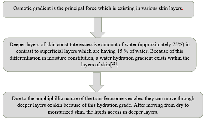 Claimed the penetrant capability of transferosome because these deformable complex droplets adapt the pore of the skin along the natural moisture gradient rather than coalescing locally. |