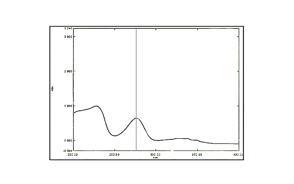 The absorption spectrum revealed a peak at 277?nm, which was selected as the analytical wavelength for whole study.