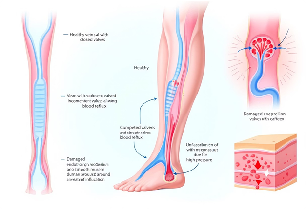 Venous valves prevent blood backflow. Their failure leads to reflux, venous pooling, and varicosities