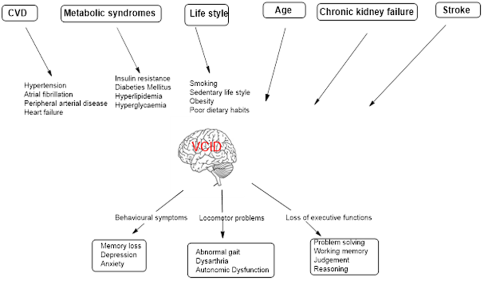 VCID considerably impacts social life by impairing executive functions such as planning and communication, leads to social withdrawal and loss of independence. Primary risk factors are vascular including hypertension and stroke. Preventive strategies for VCID focuses on “what is good for heart is good for brain”, specifically intensive blood pressure control and regular exercise.There is an urgent need for clinical trial to approve new drugs for VCID.