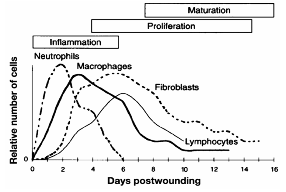 Figure 1. Time course of different cell populations in the wound during the healing process.