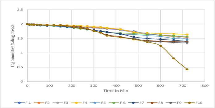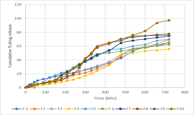 Figure No.6: In-Vitro diffusion profile of Formulation F1 to F10