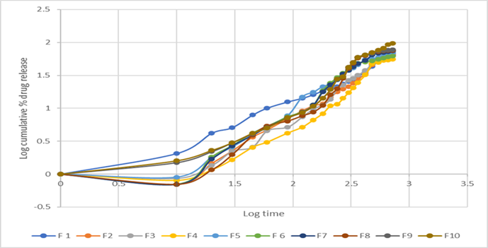 FigureNo.8: Higuchi kinetics of F1 to F10