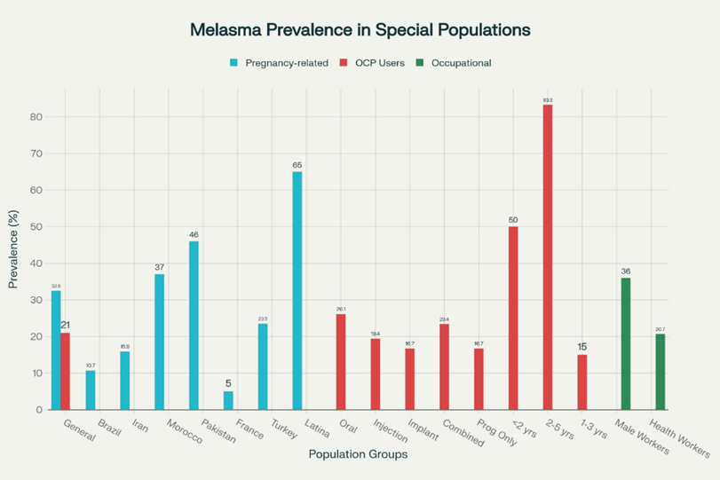Significant differences in melasma rates by geography, ethnicity, and environmental exposure are highlighted by global epidemiological studies: